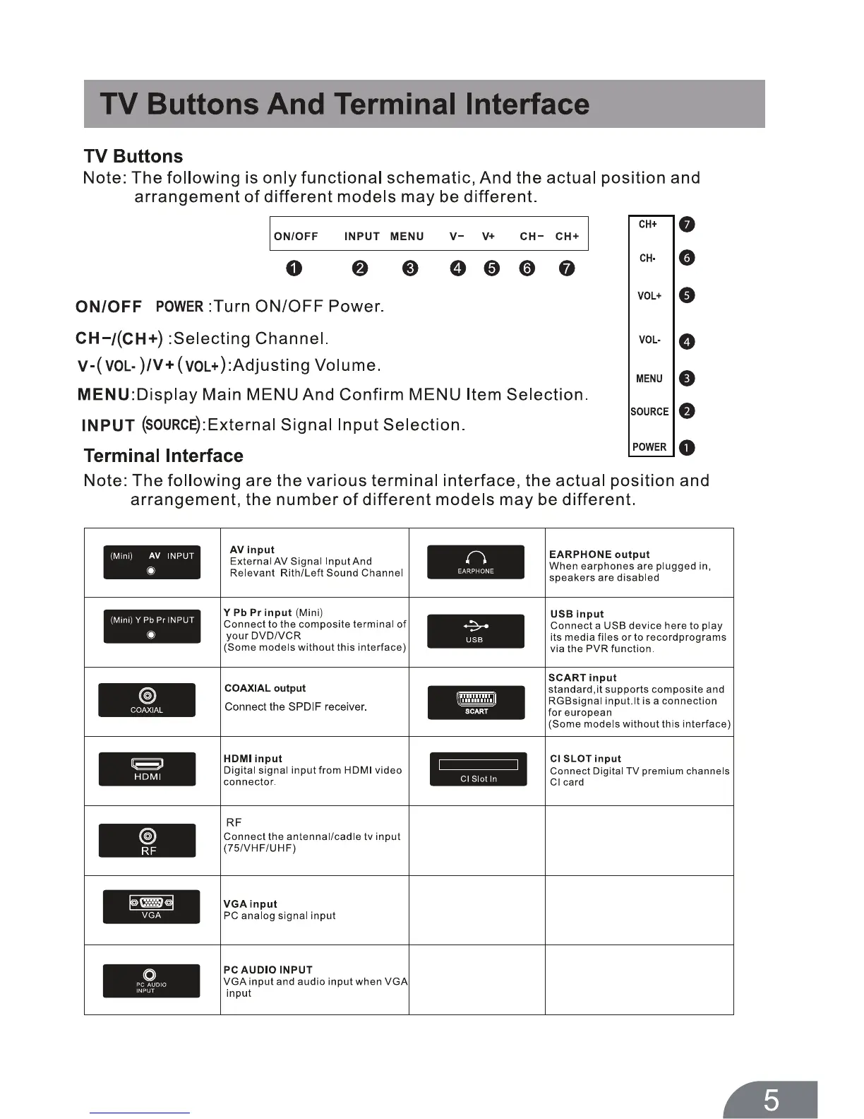 Crown 32167 - TV Buttons and Terminal Interface; TV Buttons; Terminal Interface
