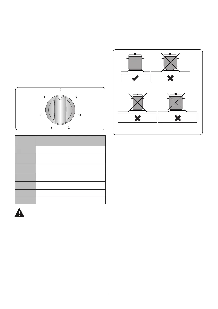 • Never use a pan with a smaller or larger