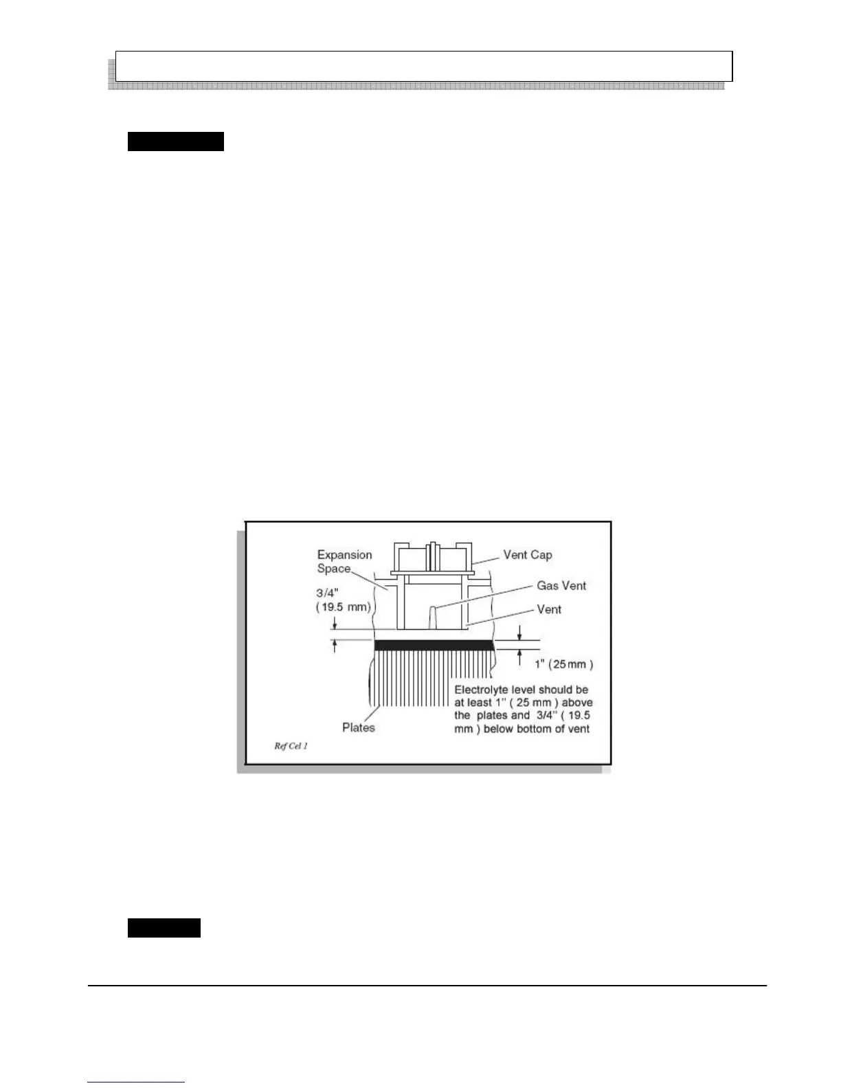 The correct level of the electrolyte is 1" (25 mm) above the plates in each cell (Ref Fig. 16).