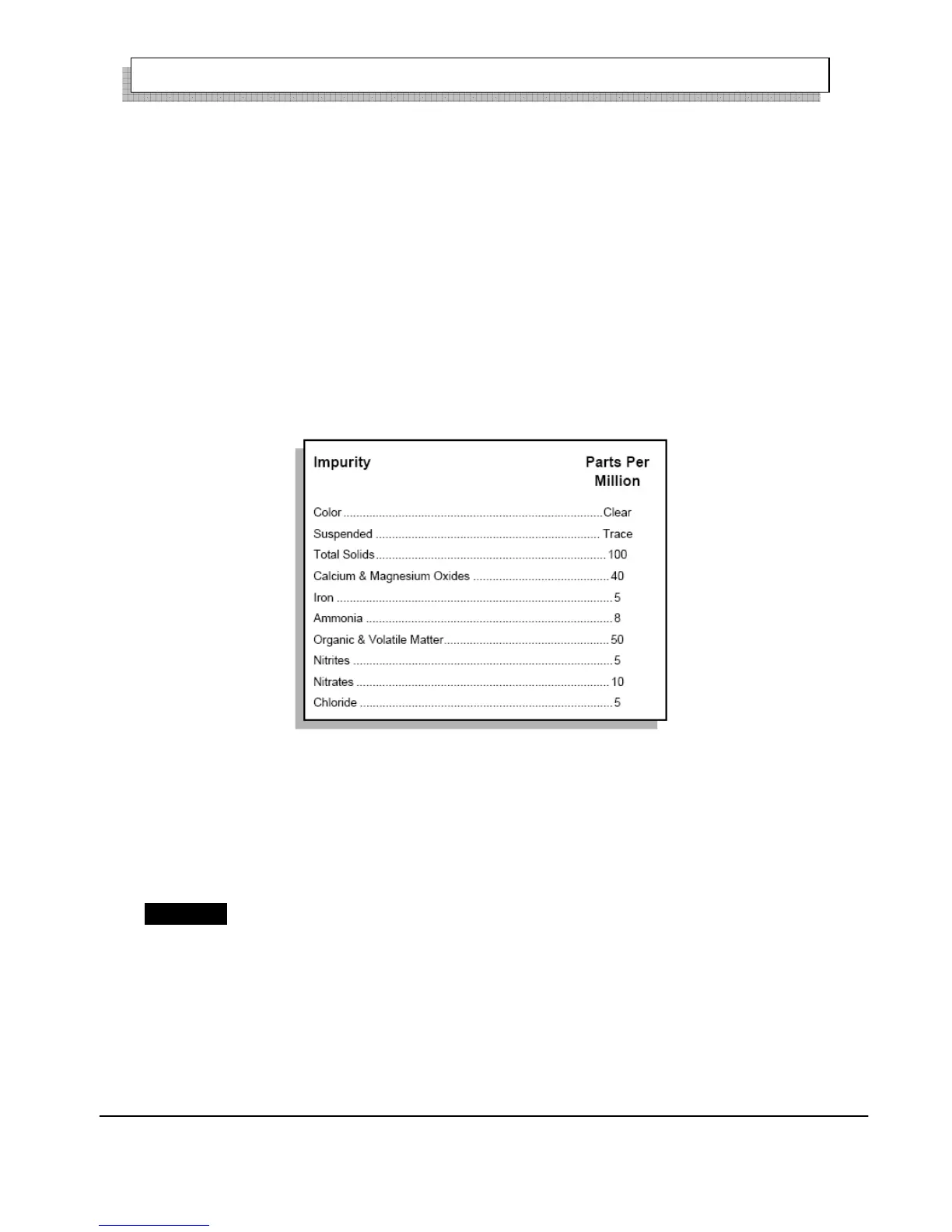 meet the requirements of the water purity table (Ref Fig.17).