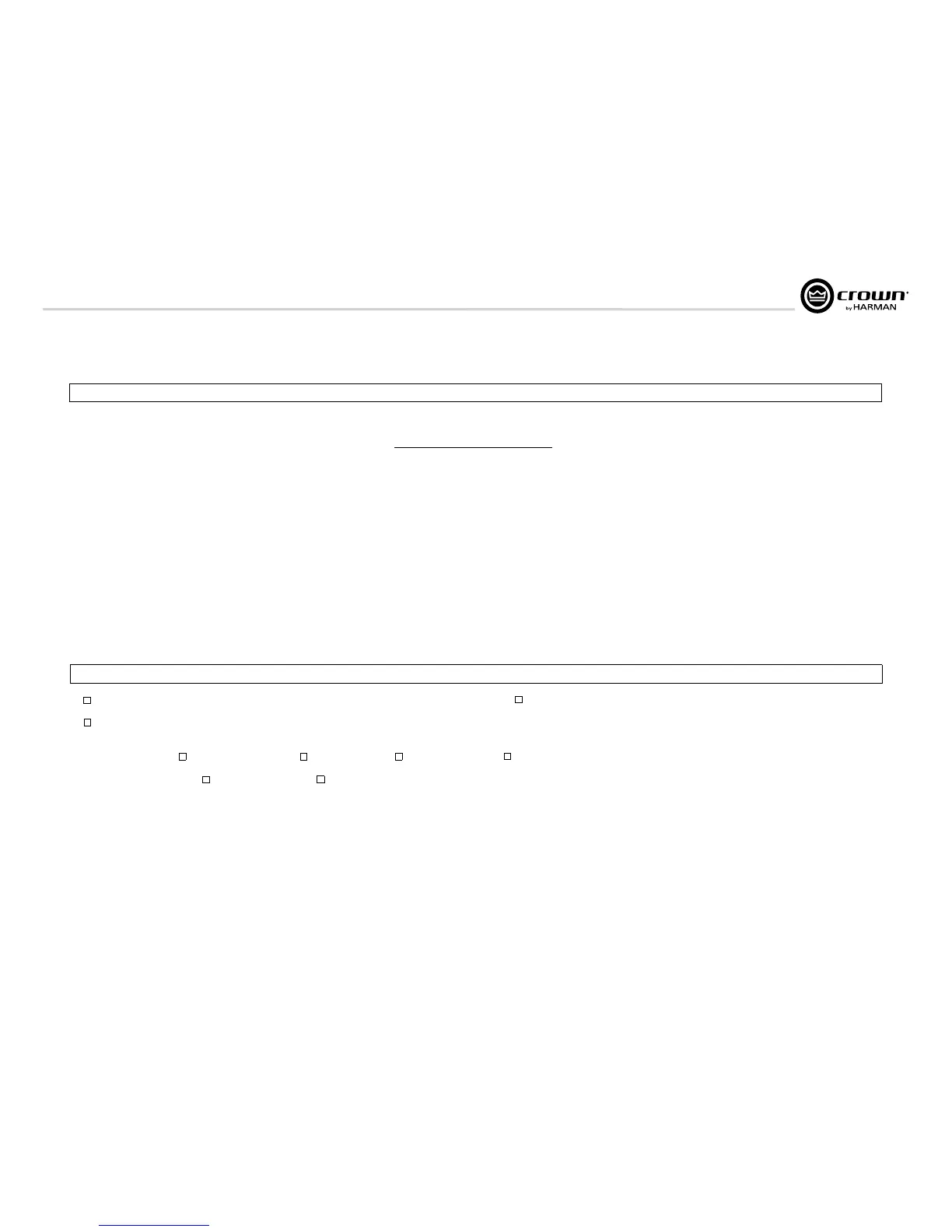 Shipping Address: Crown Audio Factory Service, 1718 W. Mishawaka Rd., Elkhart, IN 46517