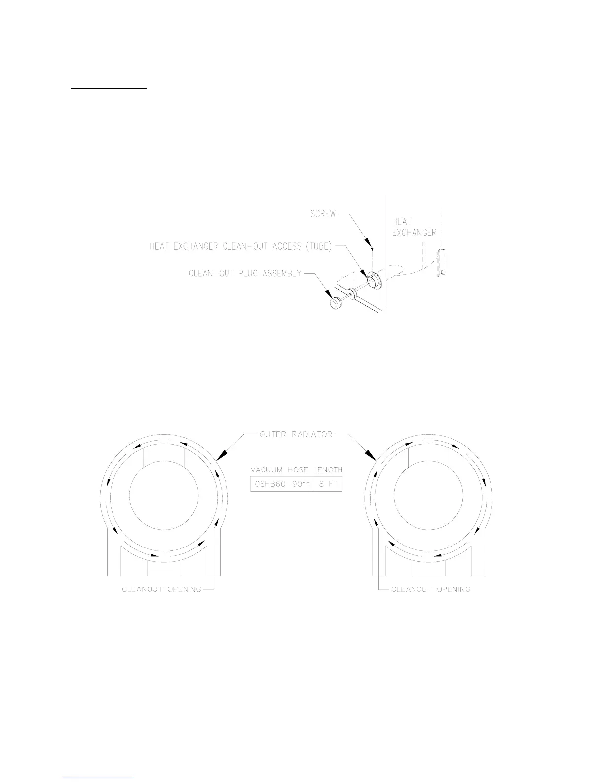 To vacuum and brush the outer radiator of the heat exchanger, go through the clean-out openings in both directions,