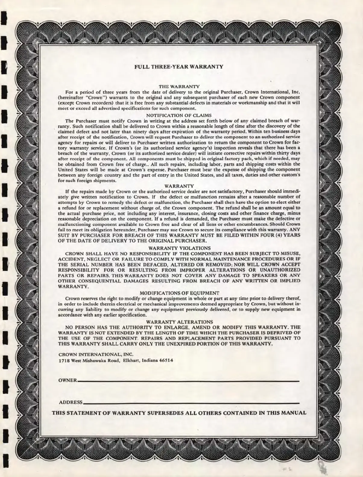COMPONENT. REPAIRS AND REPLACEMENT PARTS PROVIDED PURSUANT