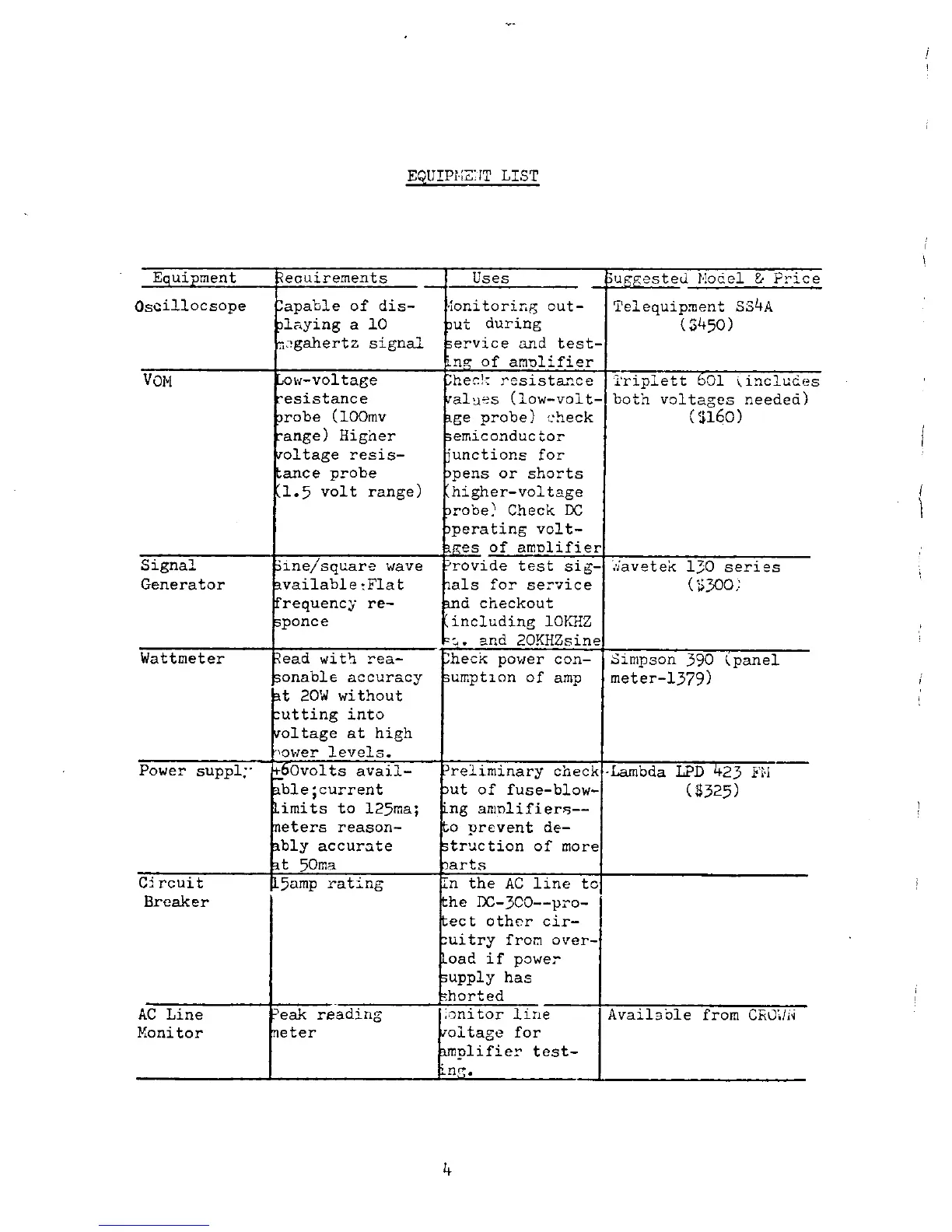 Crown DC 300 - Equipment List