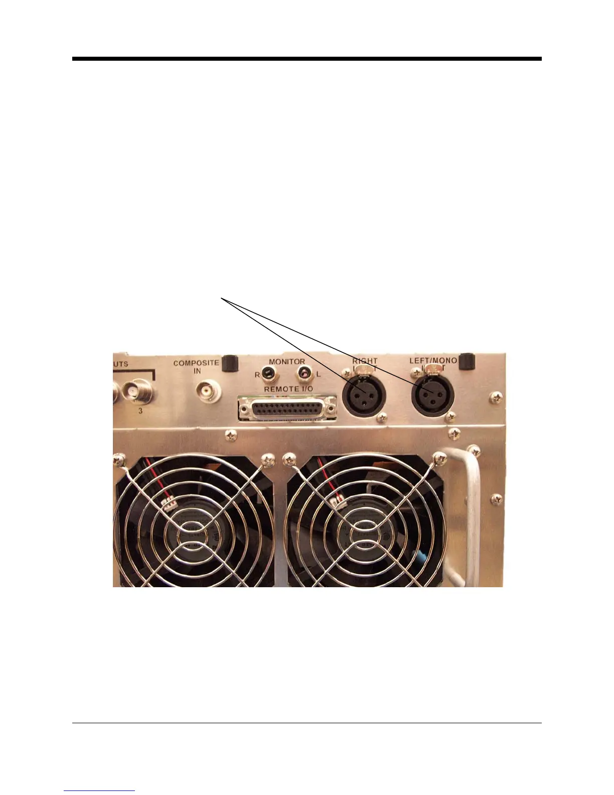 Attach audio inputs to the Left and Right XLR connectors on the rear panel. (The Left channel