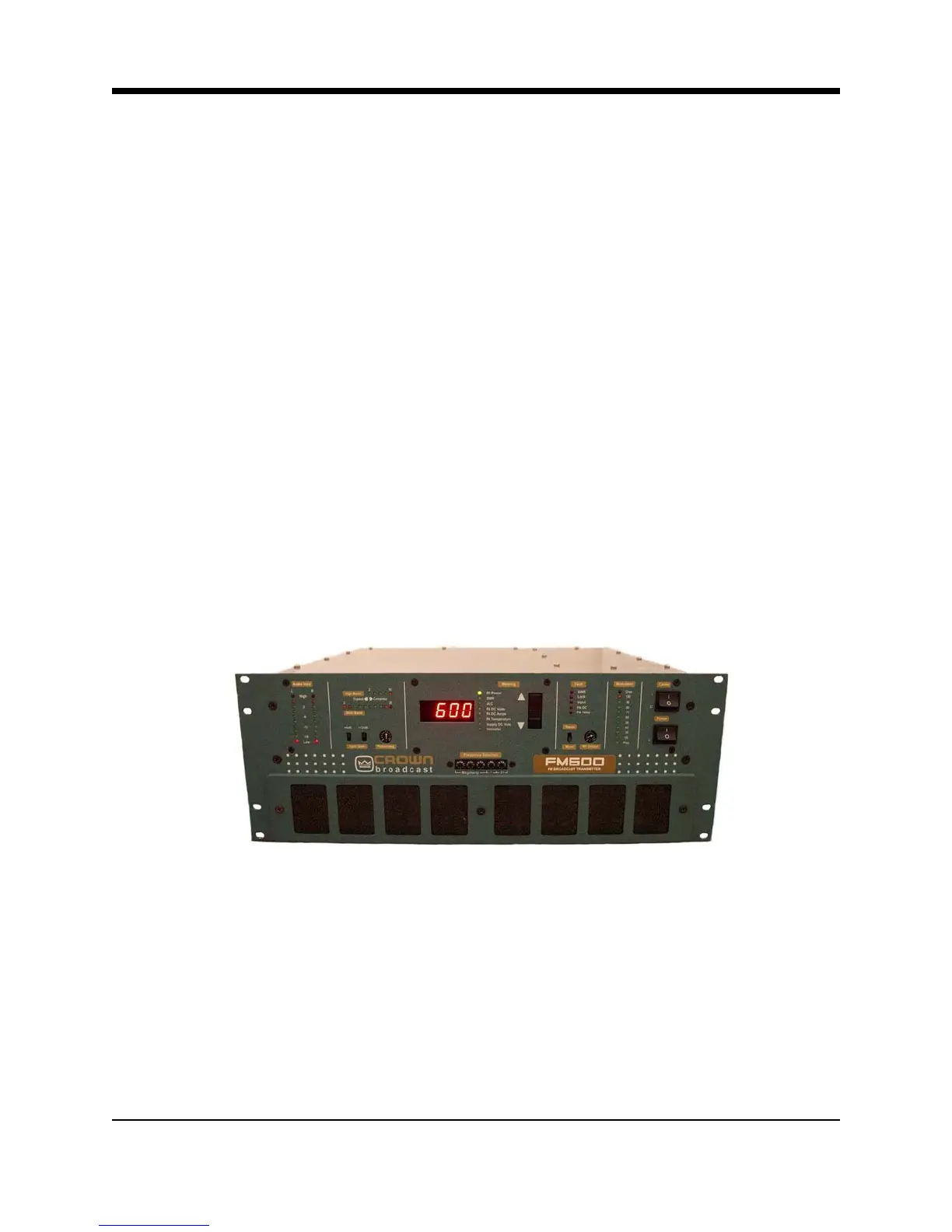 The FM600 is a member of a family of FM stereo broadcast transmitters. Crown transmitters