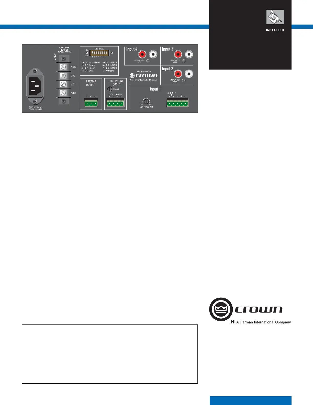Crown offers a Three-Year, No-Fault, Fully Transferable Warranty for every new Crown mixer-ampli-