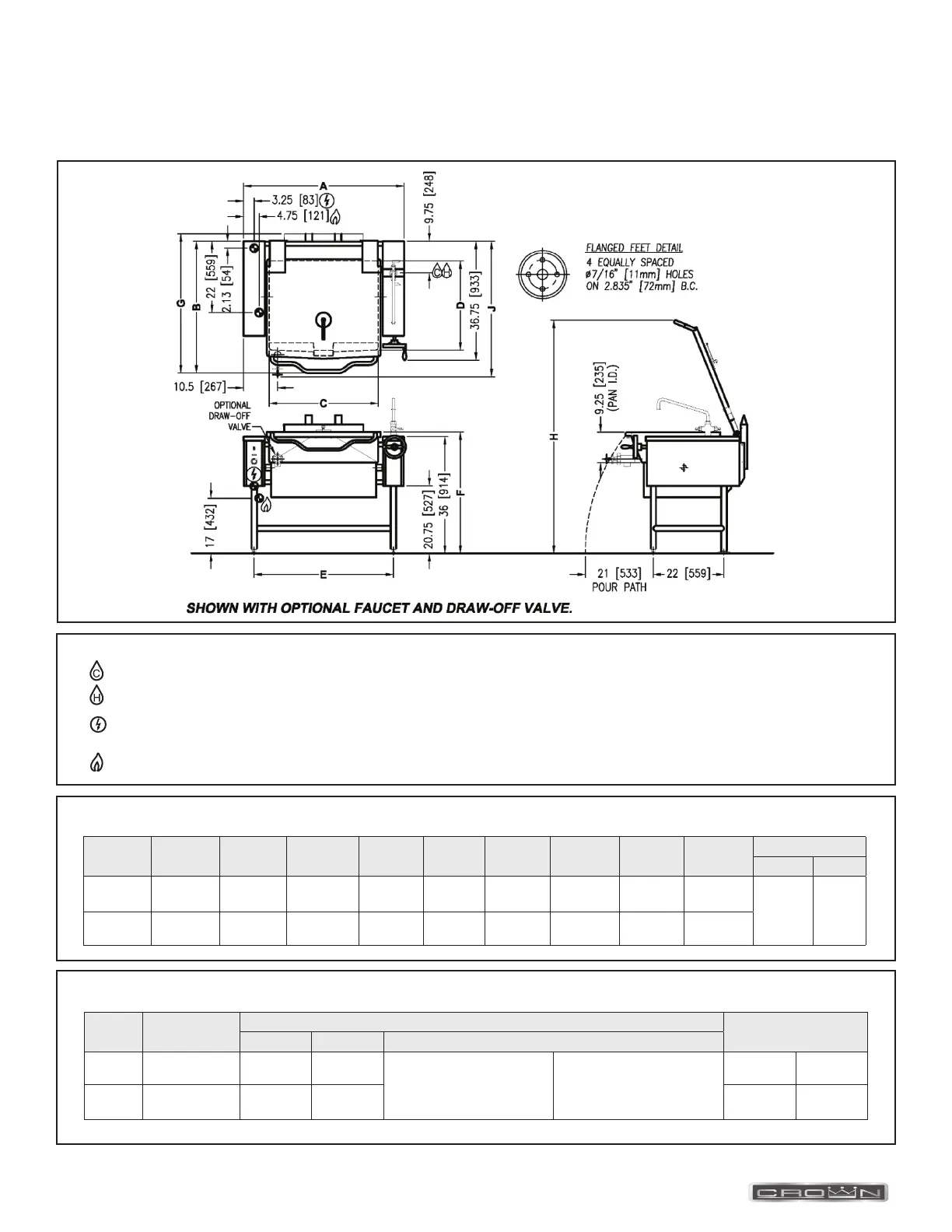 – HOT WATER: 3/8” O.D. tubing to optional faucet (OPTIONAL)