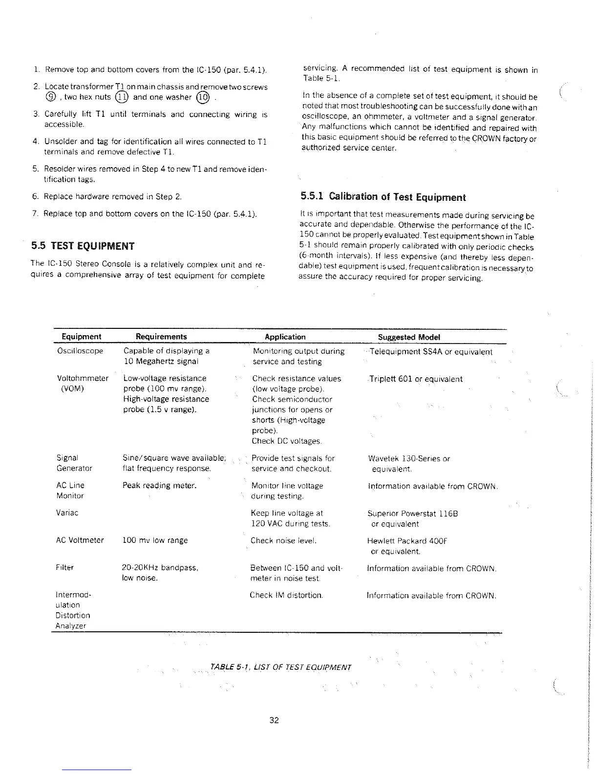 Crown IC-150 - TEST EQUIPMENT AND PROCEDURES