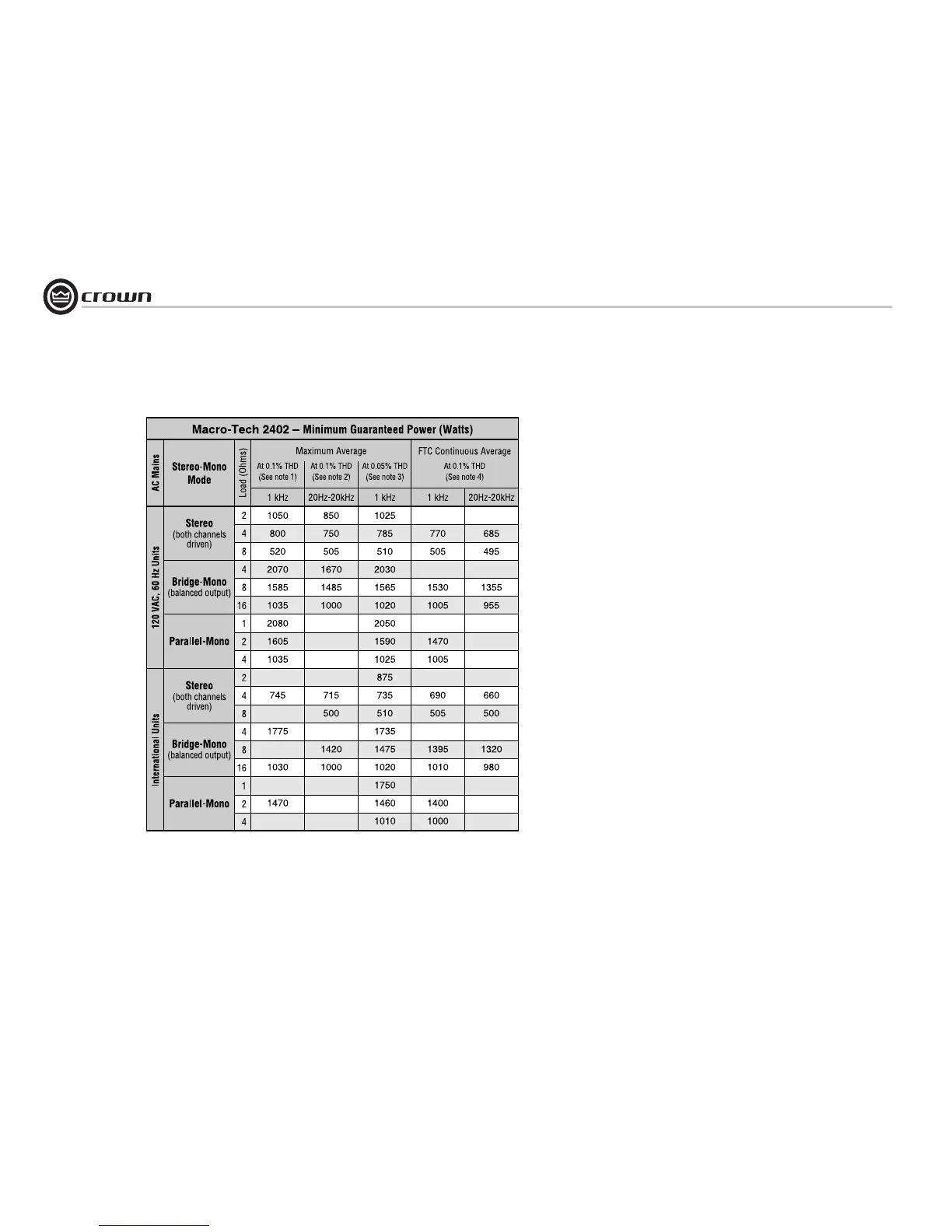 Figure 8.6 Macro-Tech 2402 Minimum Power Matrix