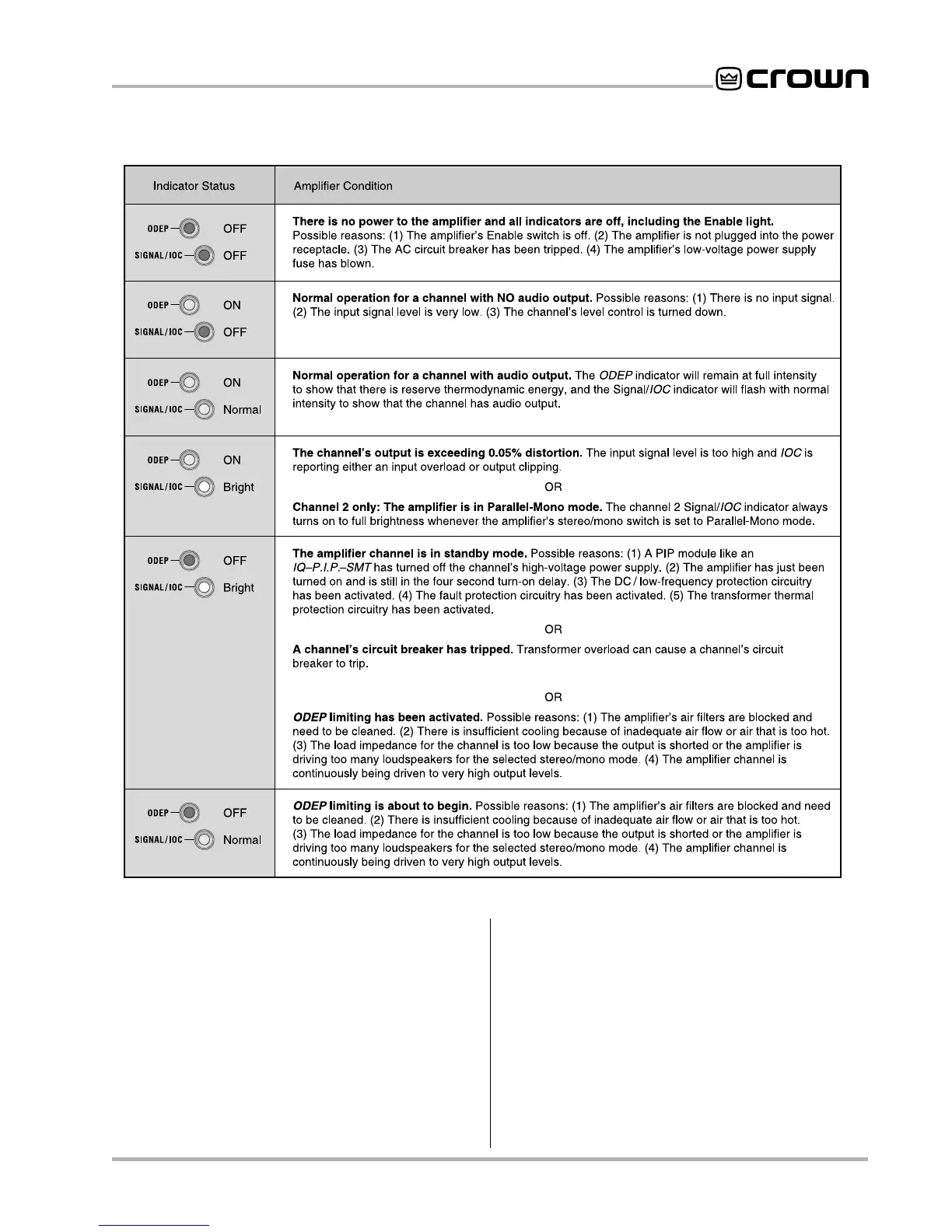 amplifier’s performance. As input overload indicators,
