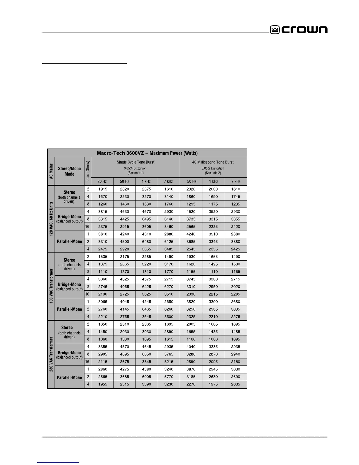 Crown’s maximum power specifications represent the largest amount of output power you can expect from your
