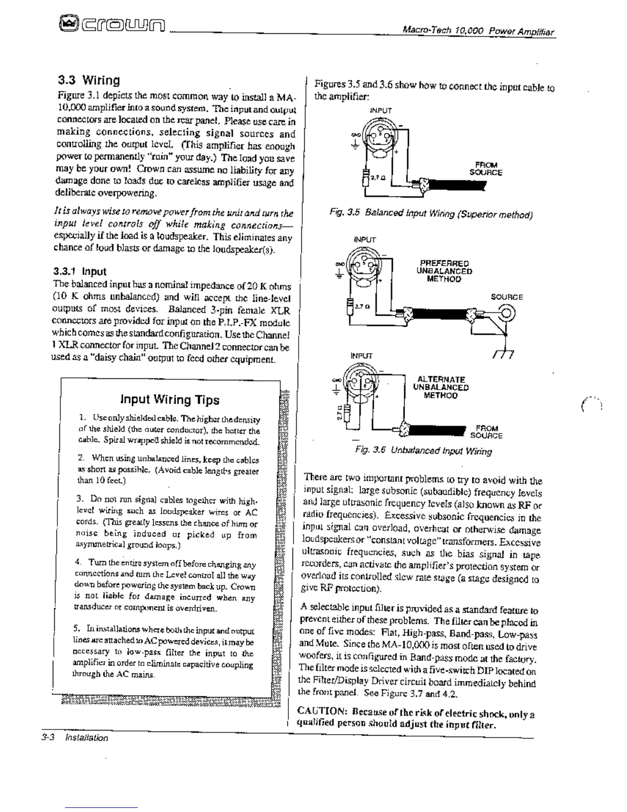 Crown Macro-Tech MA-10000 - Wiring; Inputs