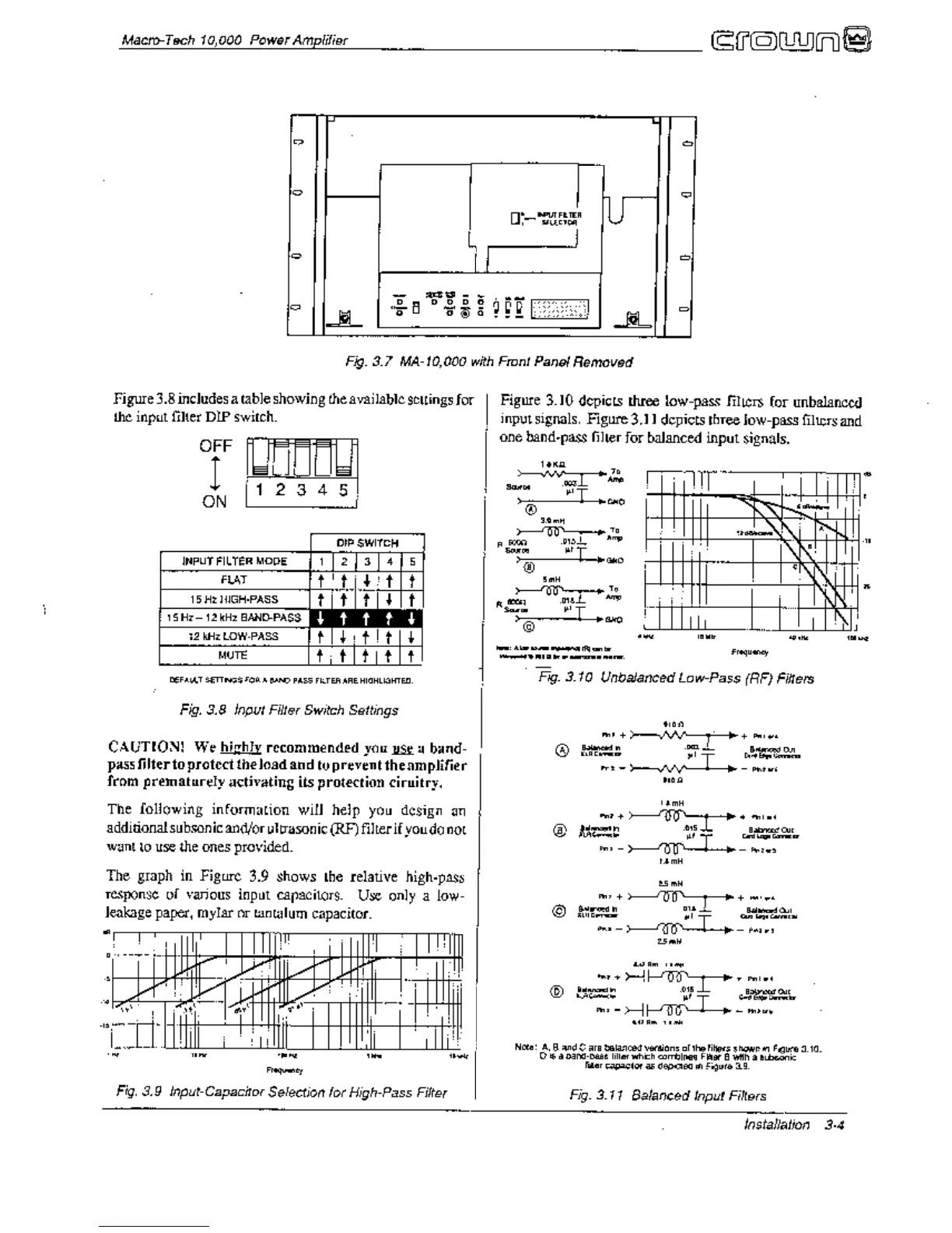 Crown Macro-Tech MA-10000 - Input Filler Switch Settings; Input-Capacitor Selection for High-Pass Filler; Unbalanced Low-Pass Filters; Balanced Input Filters