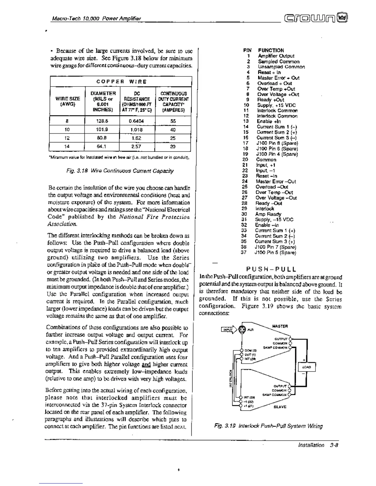 Crown Macro-Tech MA-10000 - Push-Pull; Wire Continuous Current Capacity; Interlock Push-Pull System Wiring