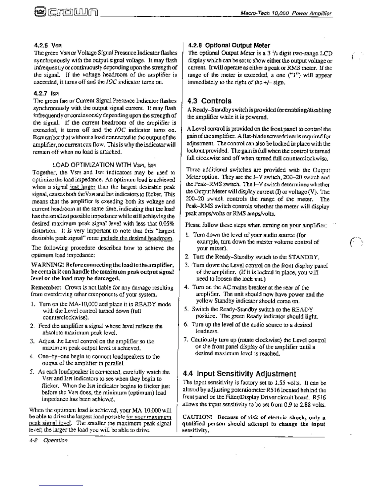 Crown Macro-Tech MA-10000 - Controls; Input Sensitivity; Optional Output Meter