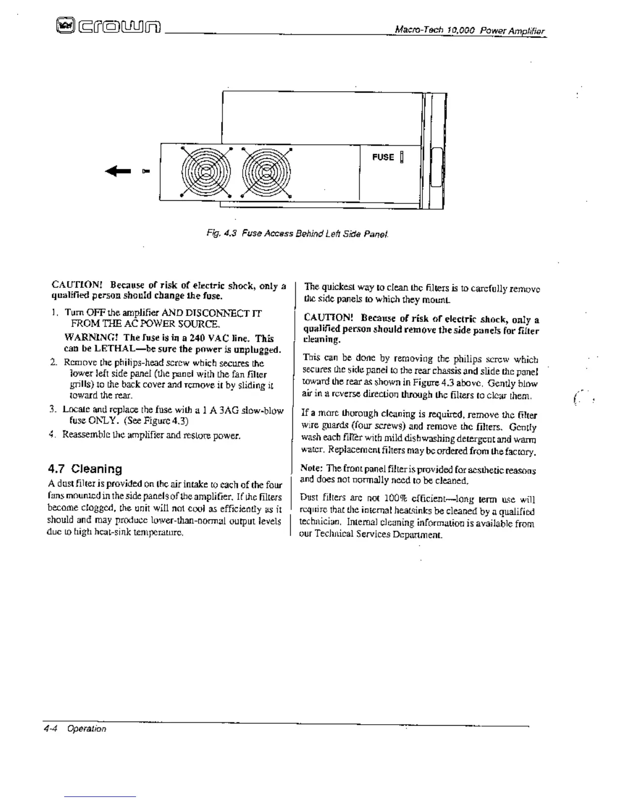Crown Macro-Tech MA-10000 - Cleaning; Fuse Access Behind Left Side Panel