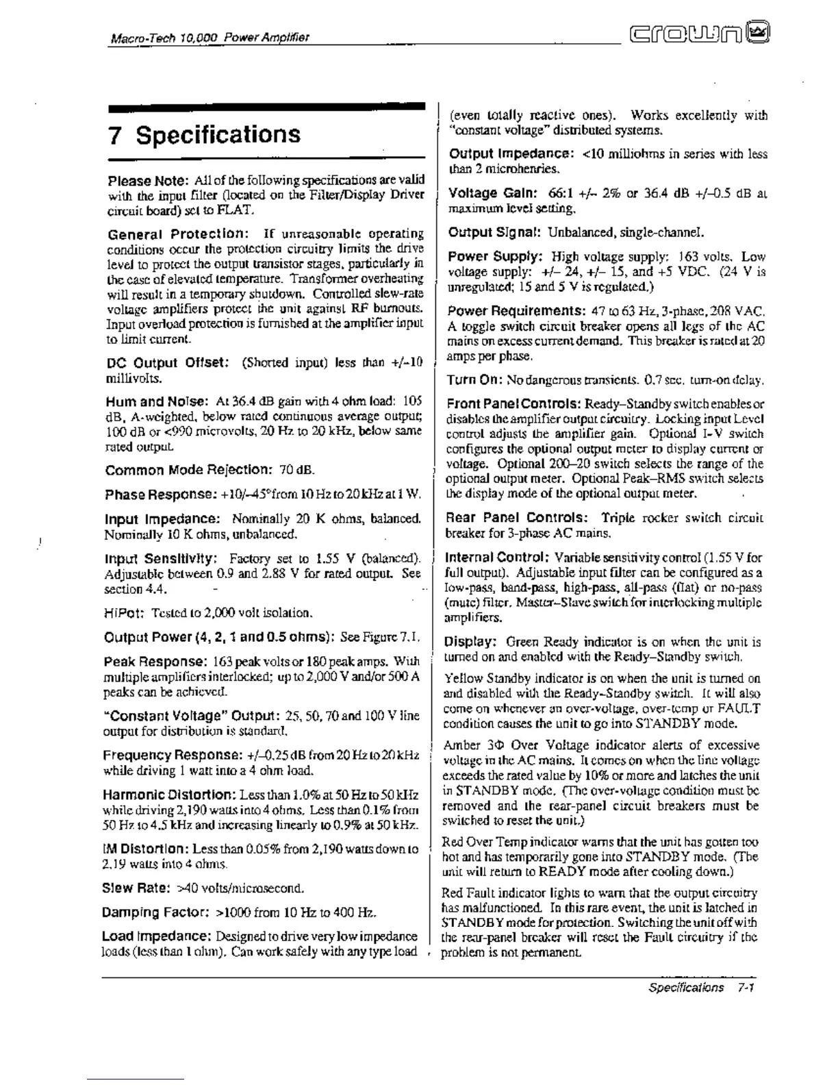 Crown Macro-Tech MA-10000 - Specifications