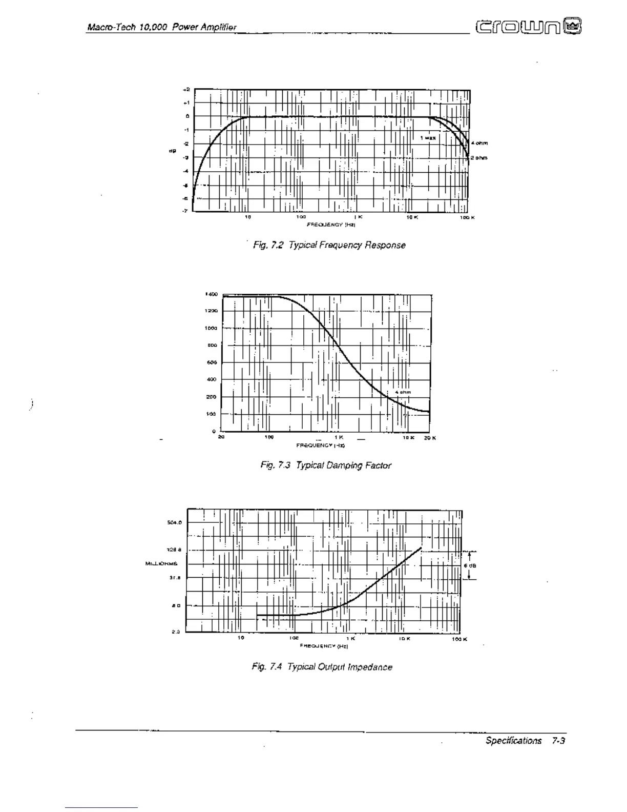 Crown Macro-Tech MA-10000 - Typical Frequency Response; Typical Damping Factor; Typical Output Impedance