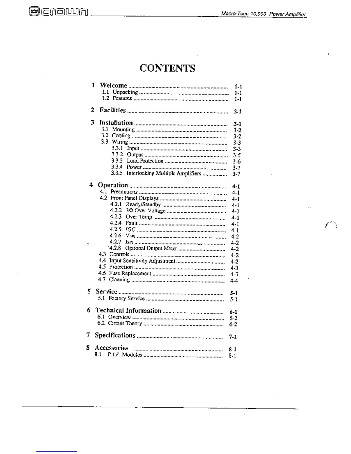 Crown Macro-Tech MA-10000 - Contents
