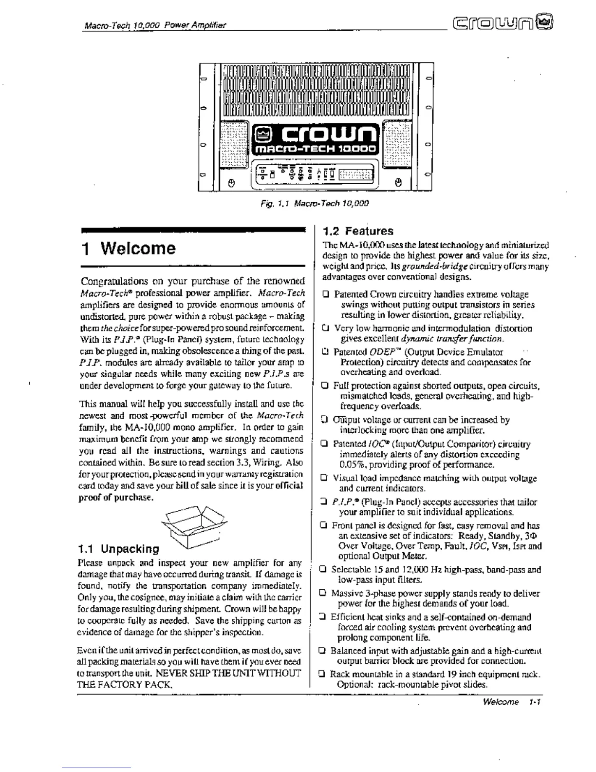 Crown Macro-Tech MA-10000 - Unpacking; Features