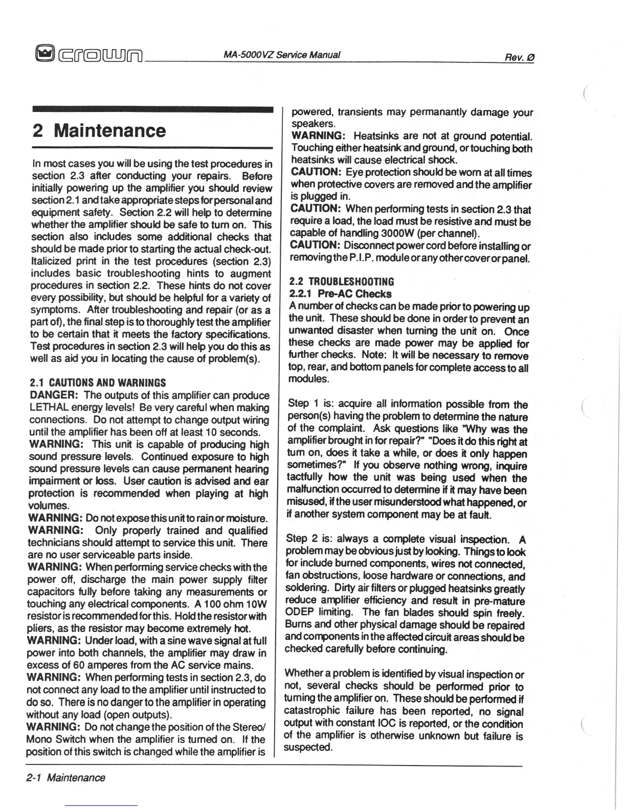 Other manuals for Crown Macro-Tech MA-5000VZ