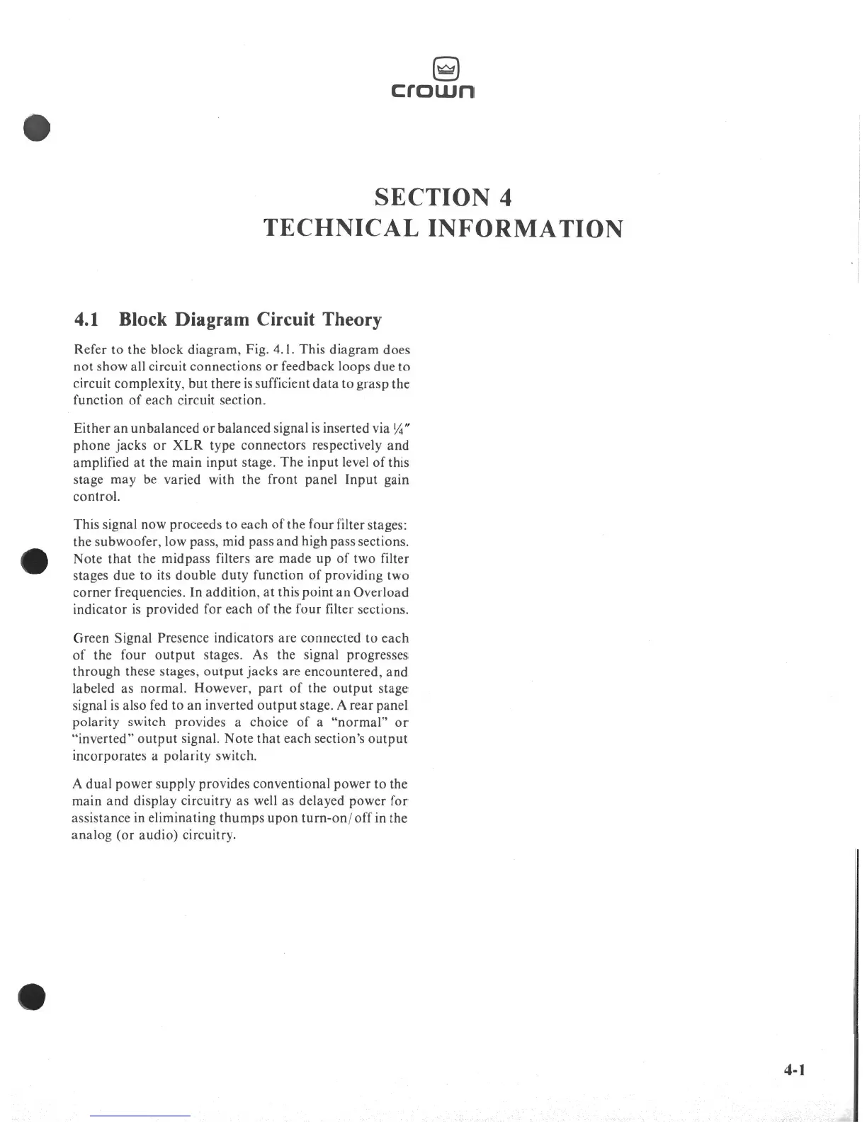 Crown MX-4 - SECTION 4 TECHNICAL INFORMATION; 4.1 Block Diagram Circuit Theory