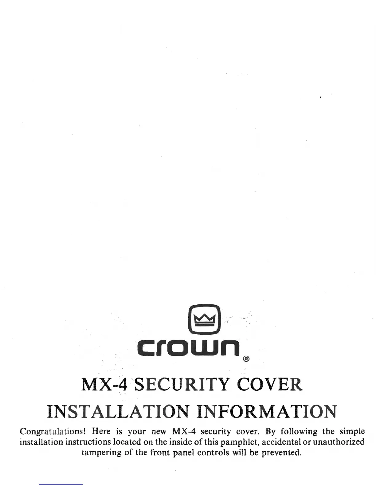 Crown MX-4 - MX-4 SECURITY COVER INSTALLATION INFORMATION