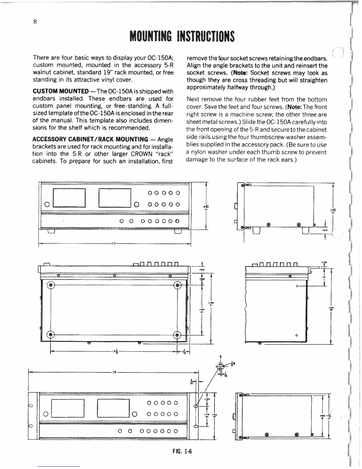 Crown OC-150A - Mounting and Installation Instructions; Custom Mounting Options; Rack and Cabinet Mounting