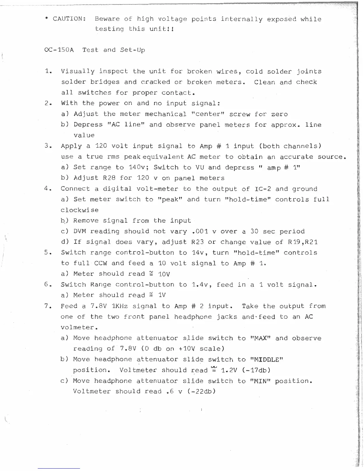 Crown OC-150A - OC-150 Test and Setup Procedures