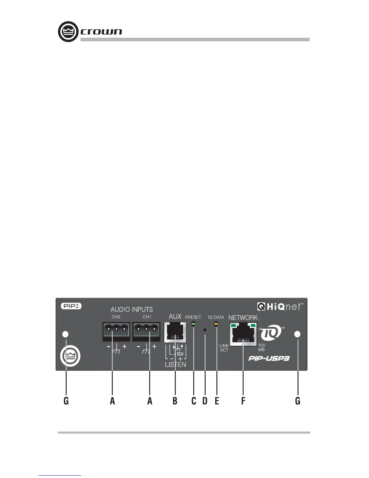 Figure 2.3 PIP-USP3 Front Panel Controls, Indicators and Connectors