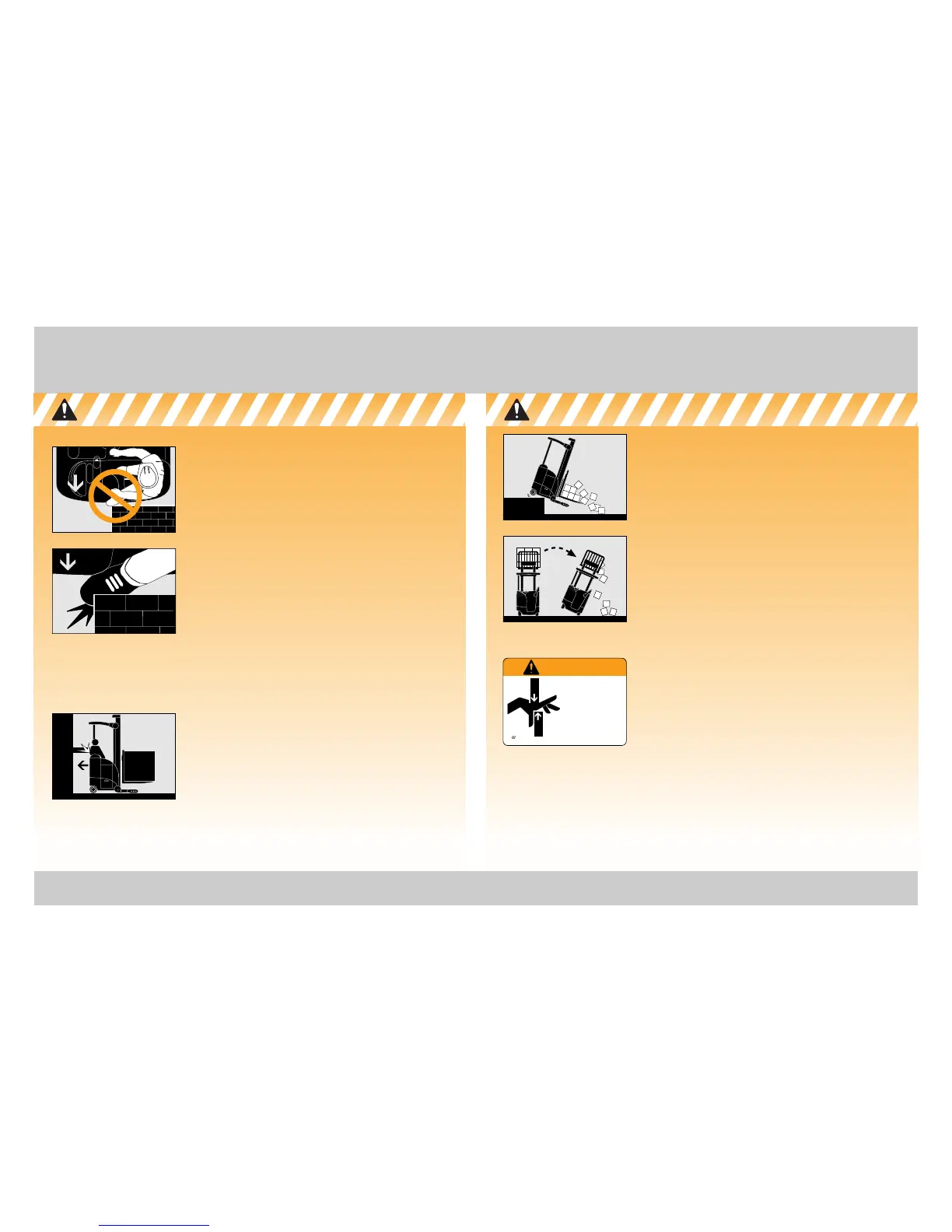 • Never stand on or under the forks, or allow anyone