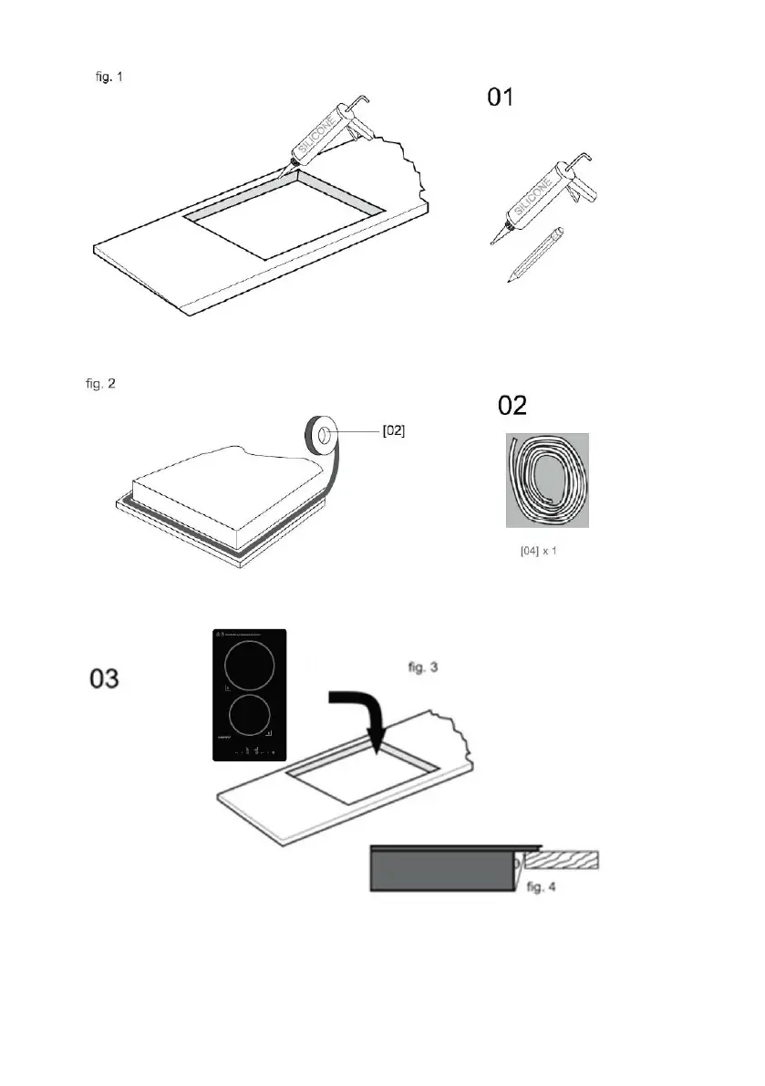 Отрежете отвор работния плот с показаните размери (фиг. 1) с подходящо оборудване.