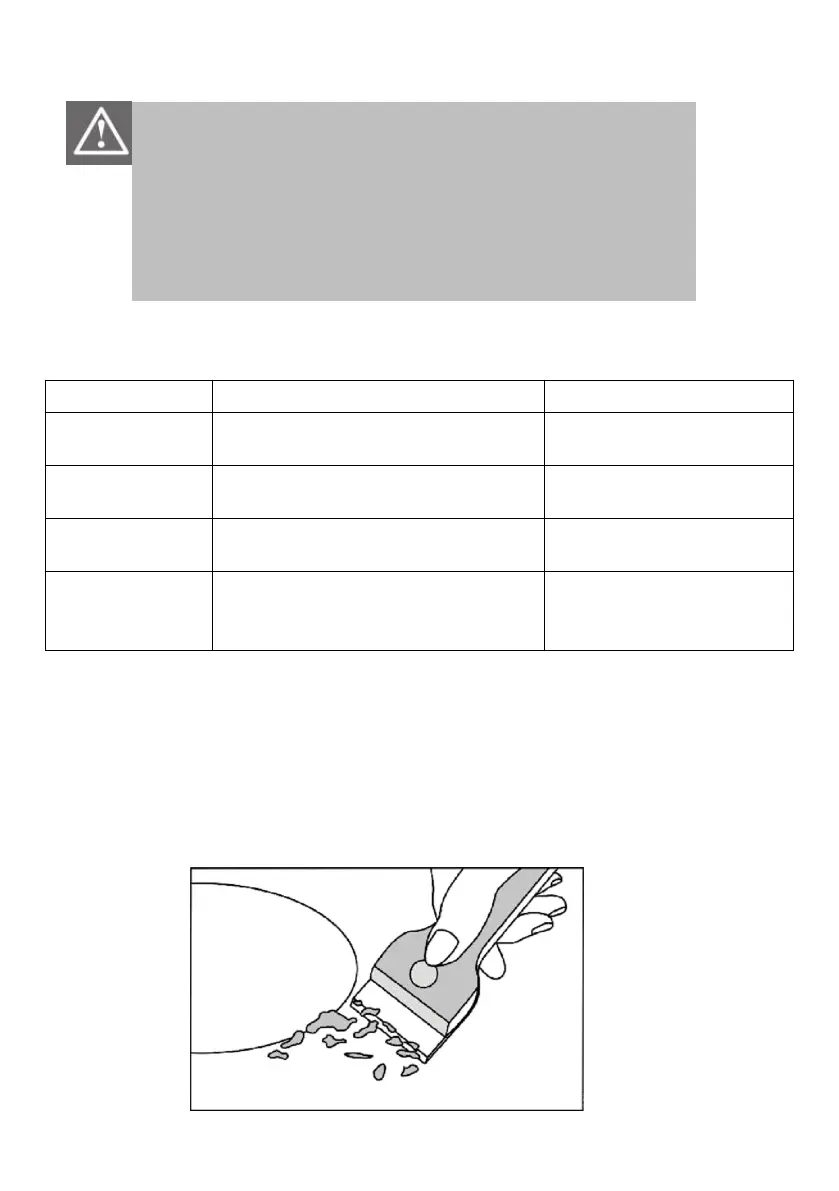 • Clean the ceramic hob on a regular basis to prevent the