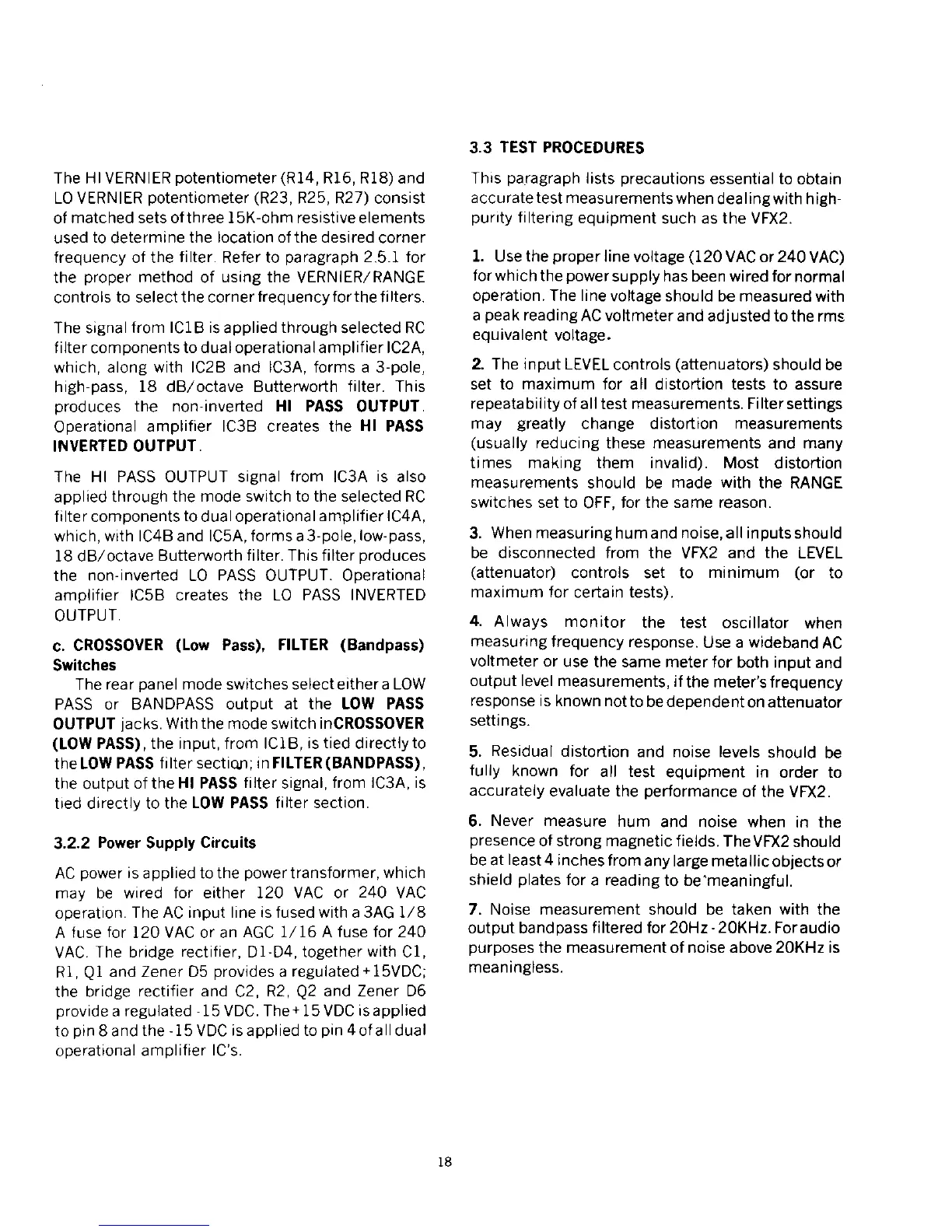 Crown VFX-2 - Test Procedures; Power Supply Circuits