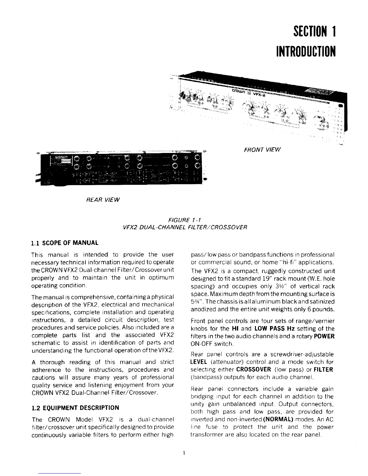 Crown VFX-2 - Introduction; Rear View; Front View; Equipment Description