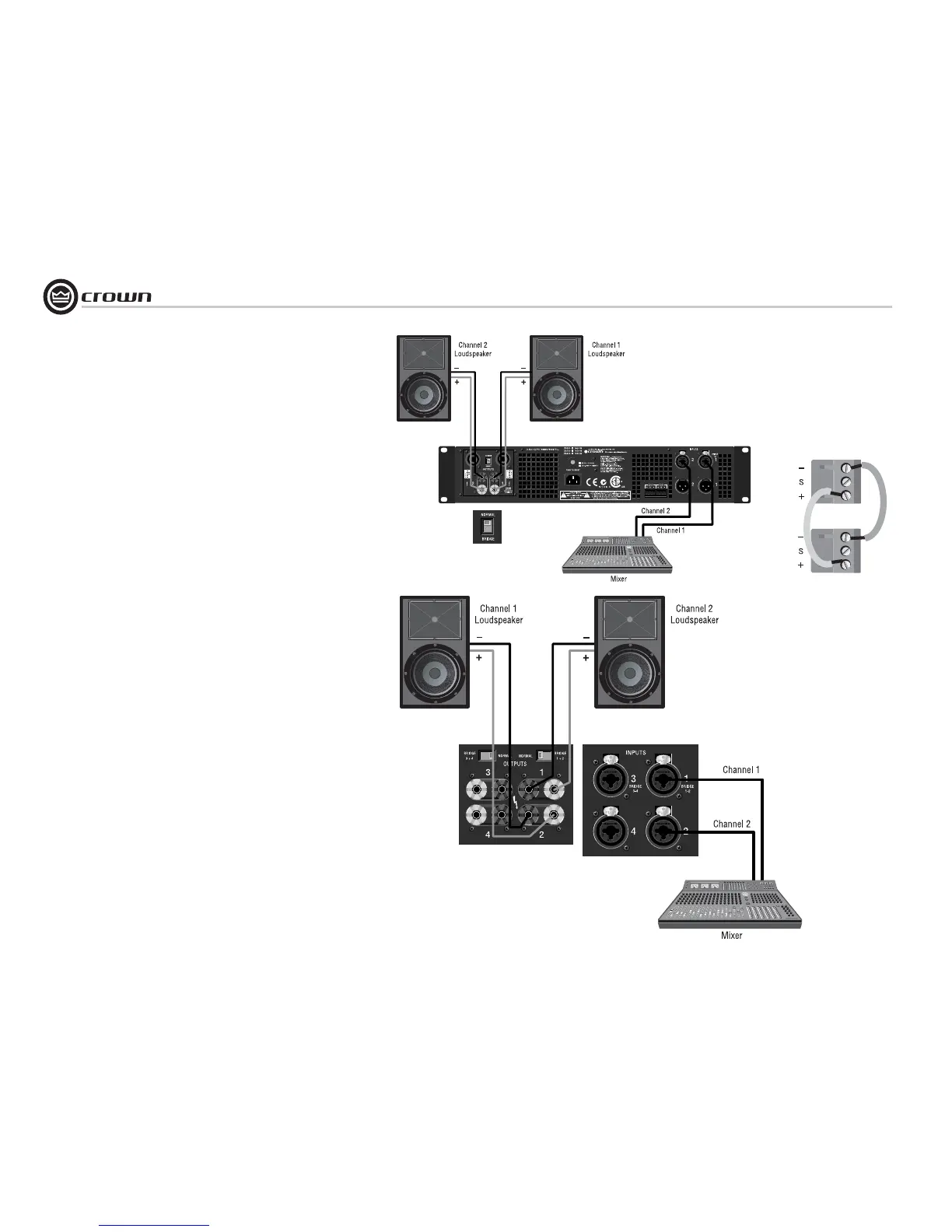 3. Connect speaker 2 positive (+) lead to the amp’s Channel-2