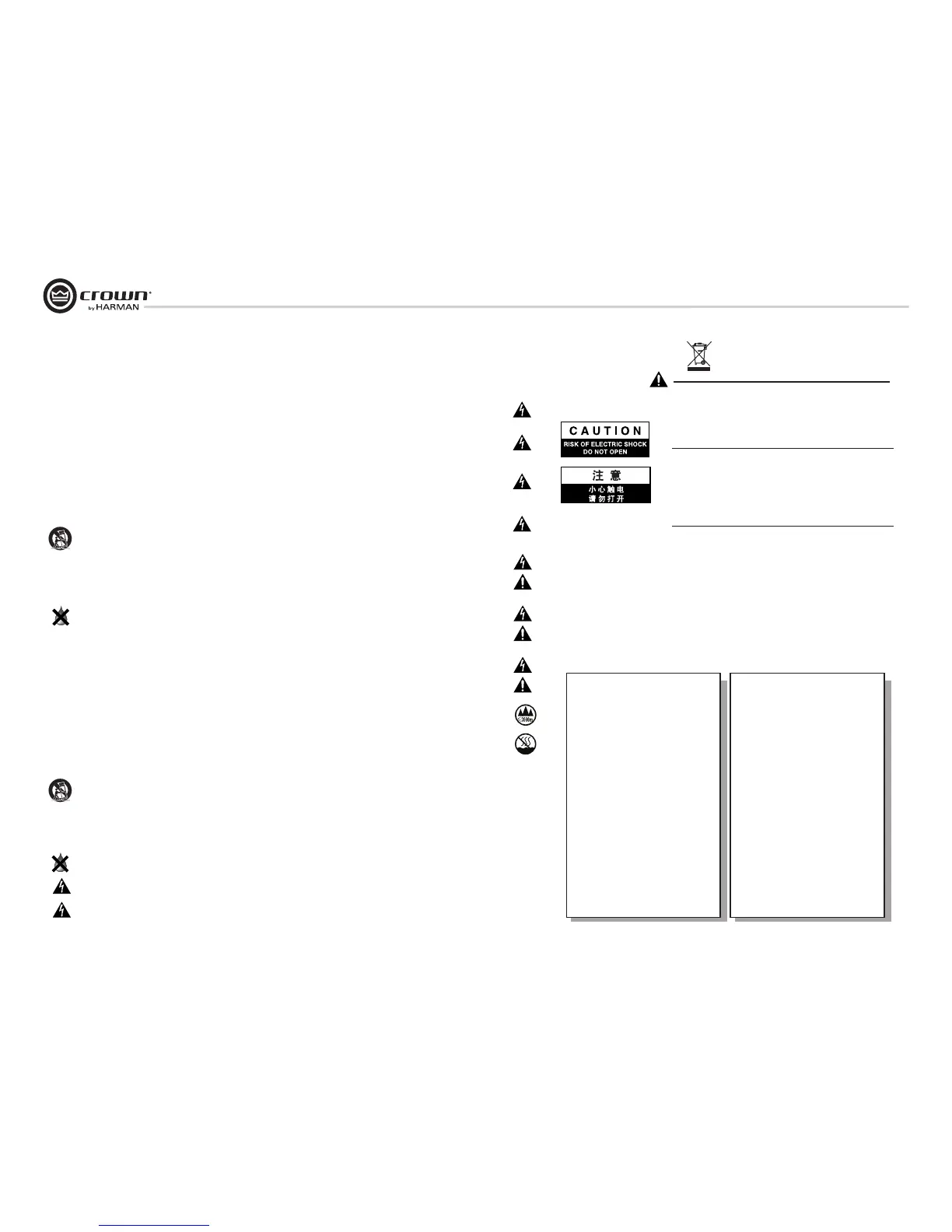 为防止触电,请勿卸下顶盖。设备内部没有用户可维修的部件。维修工作都