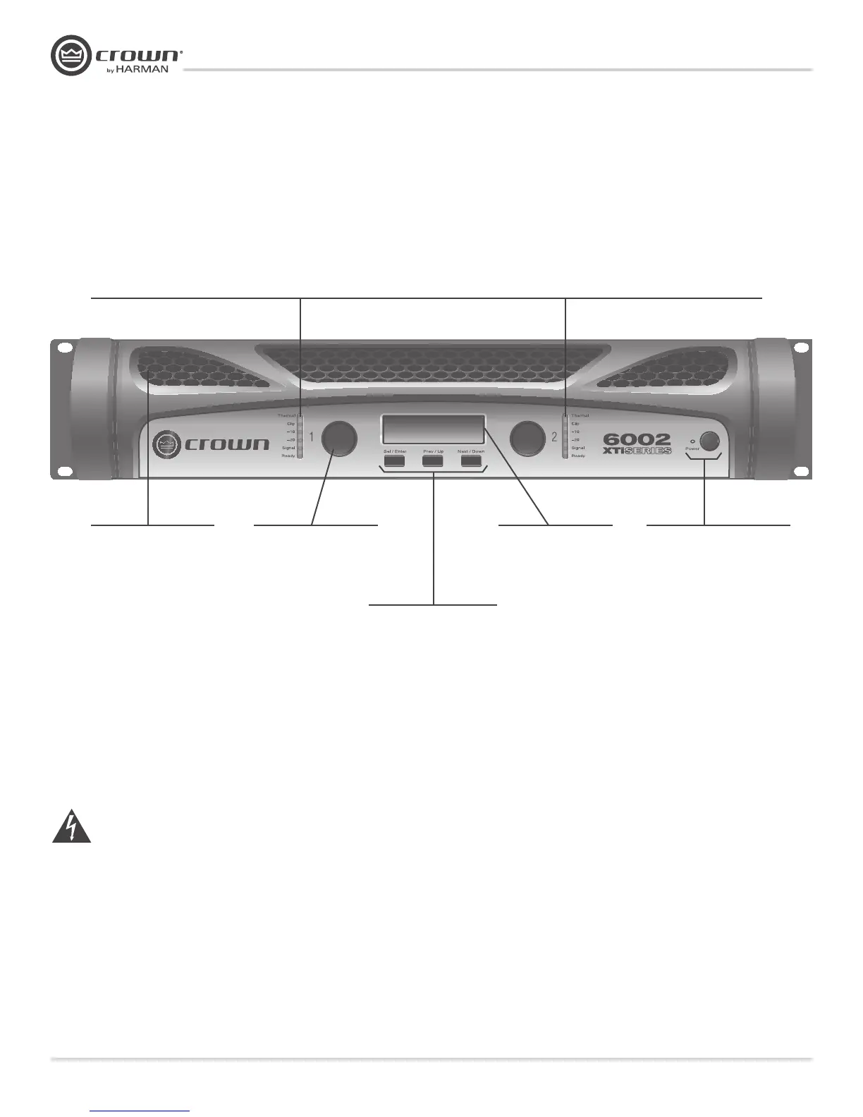 Ready Indicator: Two green LEDs, one for each channel, illuminate when the amplifier is ready to produce audio.
