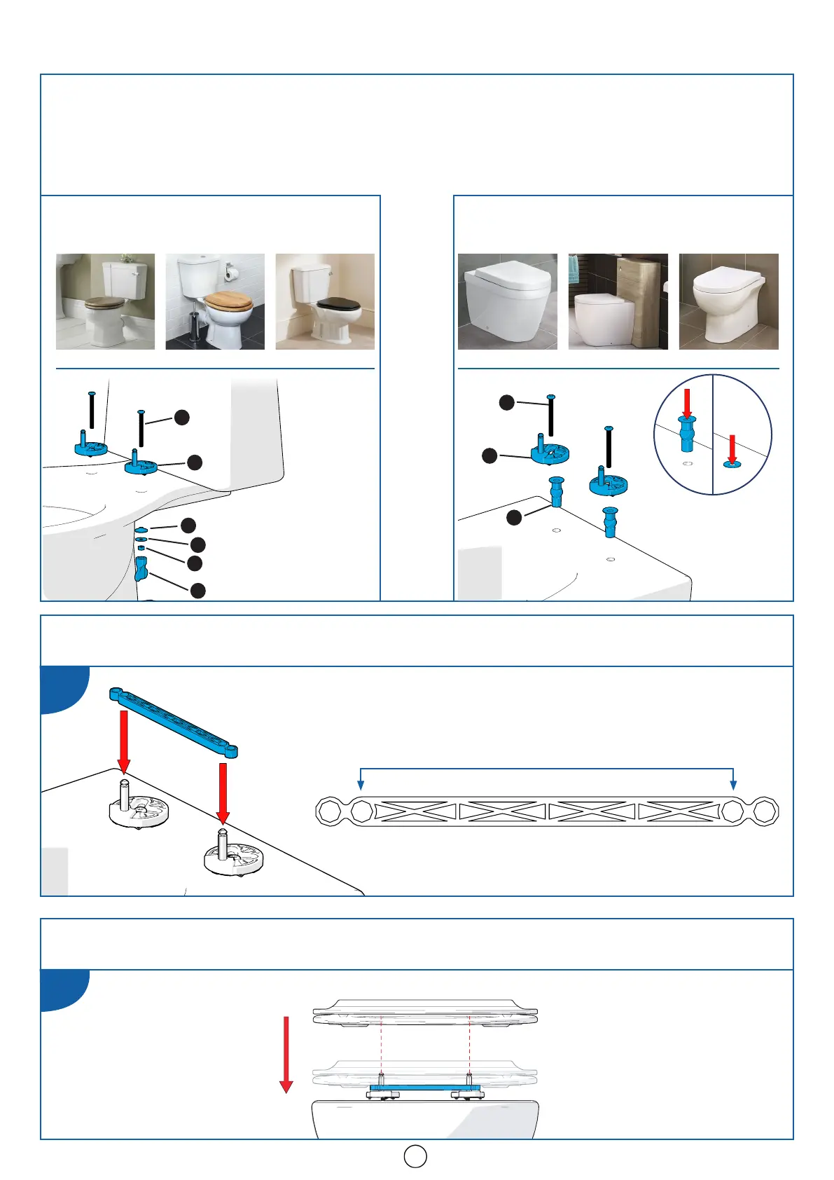 Identify your toilet pan style. Loosely install the flexi fix bracket (B) through the mounting