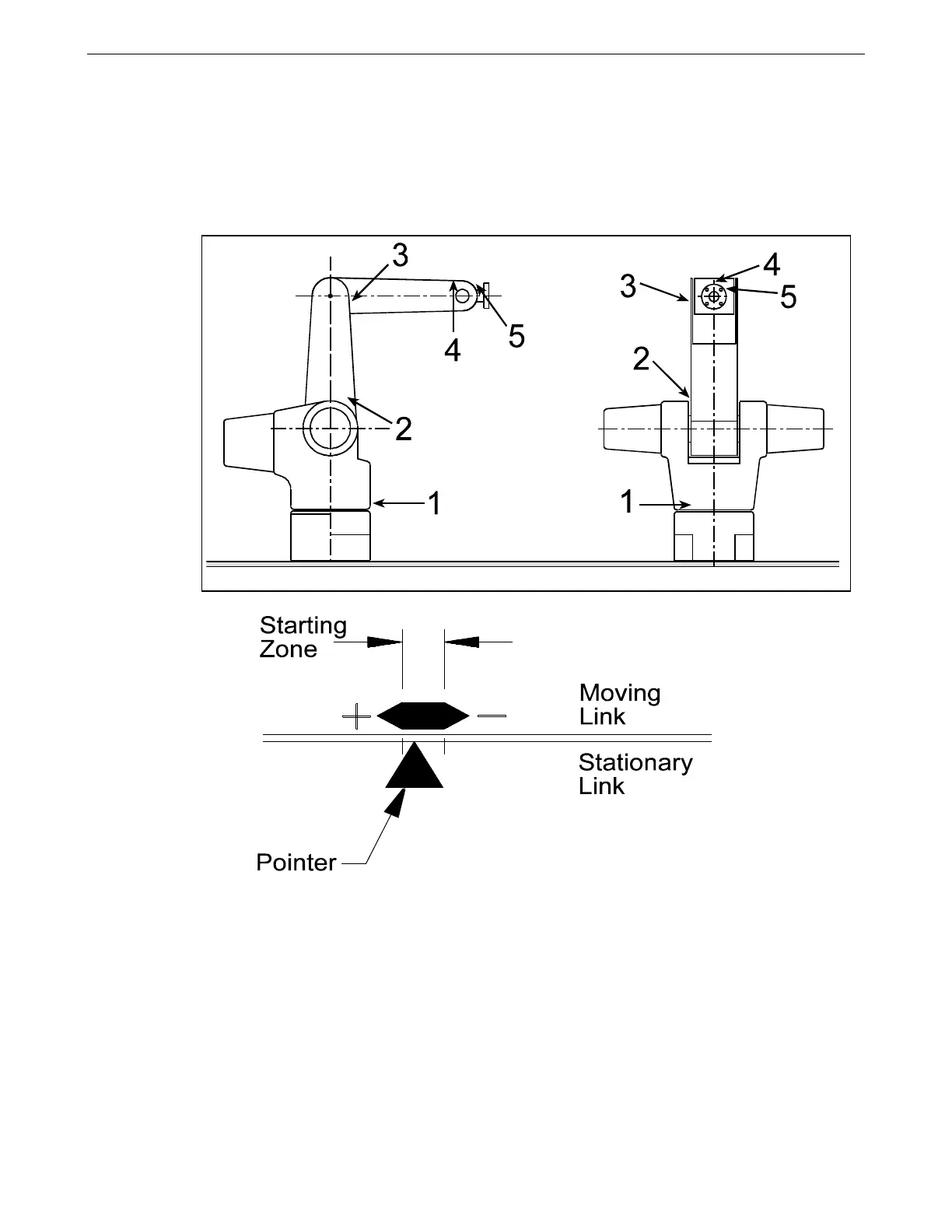 4. Move each joint until its pointer sits within its starting zone. The location of