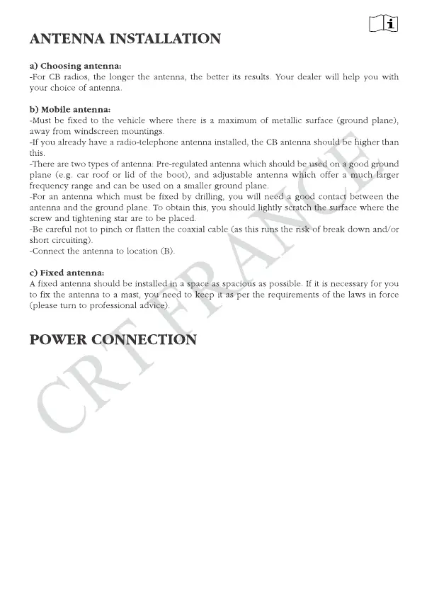 CAUTION : please ensure proper polarity - check the fuse before first use of the radio.
