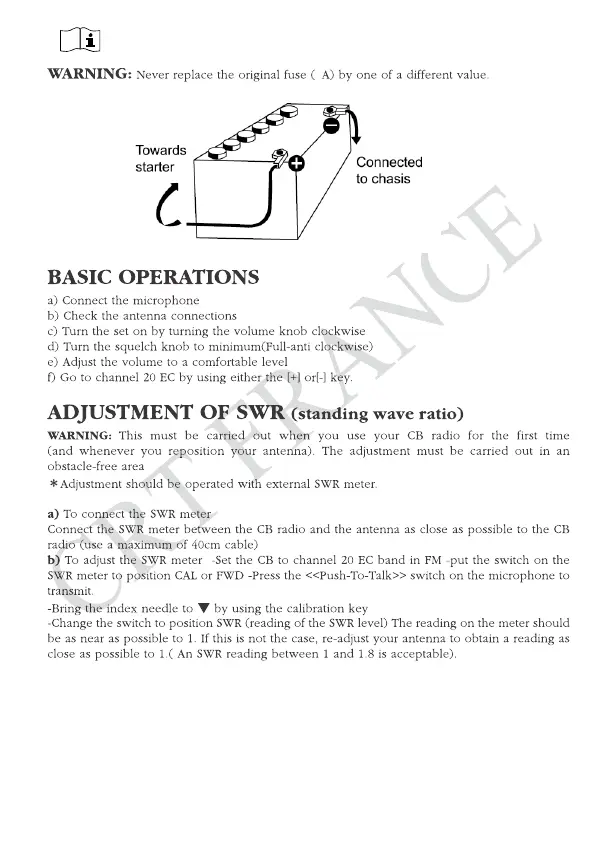 CRT ALPHA - BASIC OPERATIONS; ADJUSTMENT OF SWR