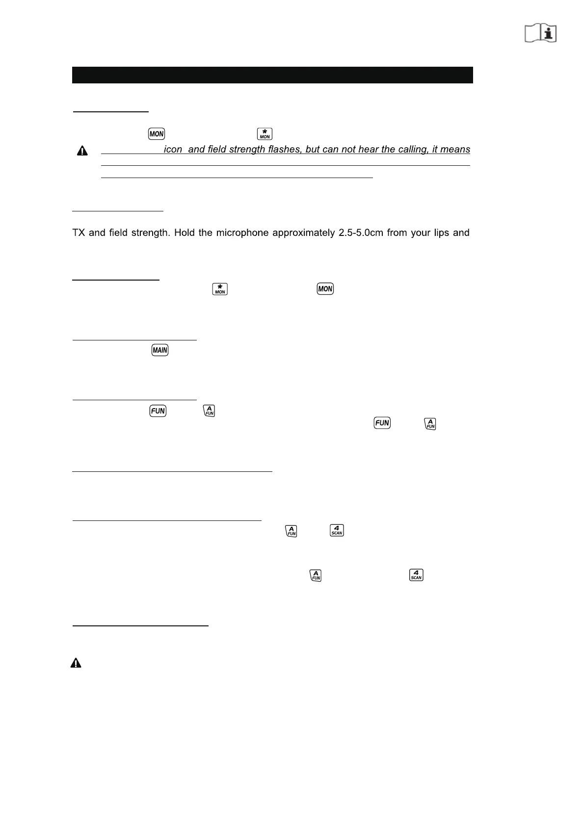 1. VFO scan: In VFO mode, press microphone key or key to start VFO scan. If the