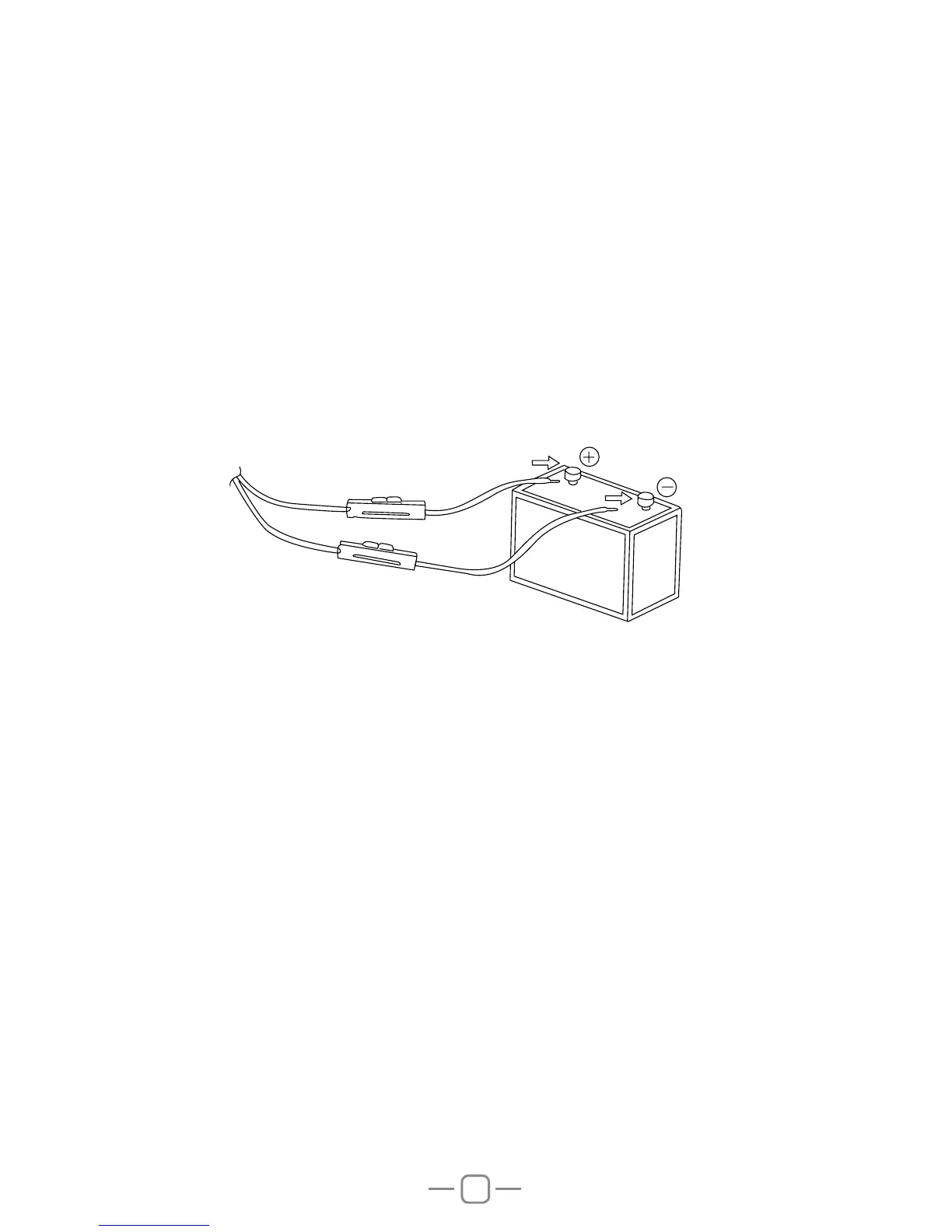 battery terminals; red connects to the positive (+) terminal and black connects to the