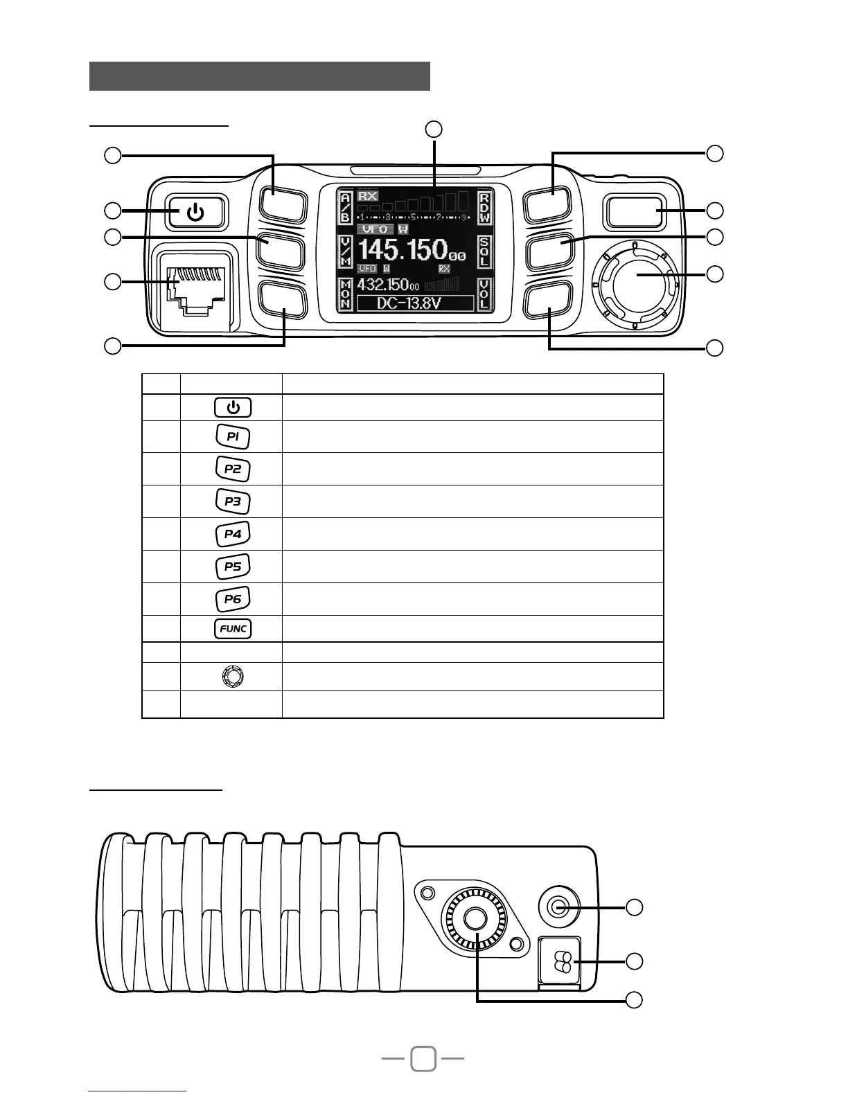 11 LCD display Display channel/frequency/function setting