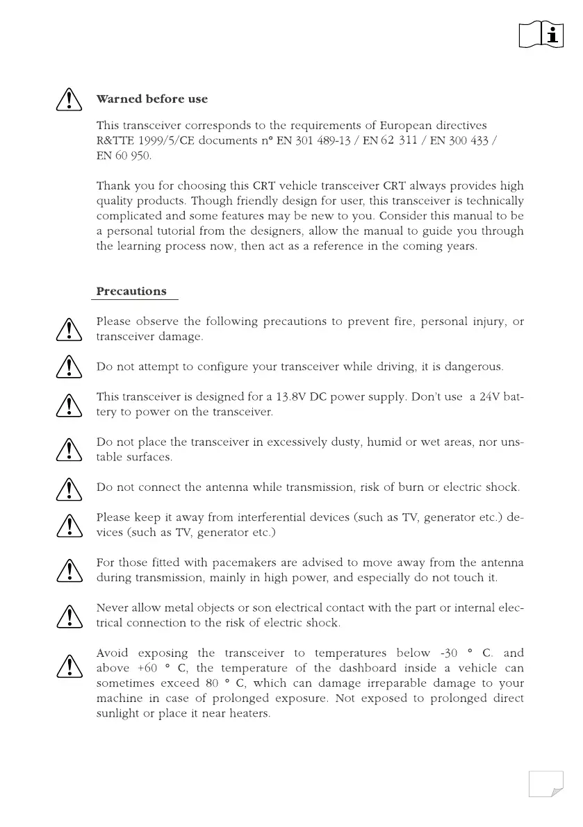 CRT Mike - Safety and Precautions; Warnings Before Use; General Operational Precautions