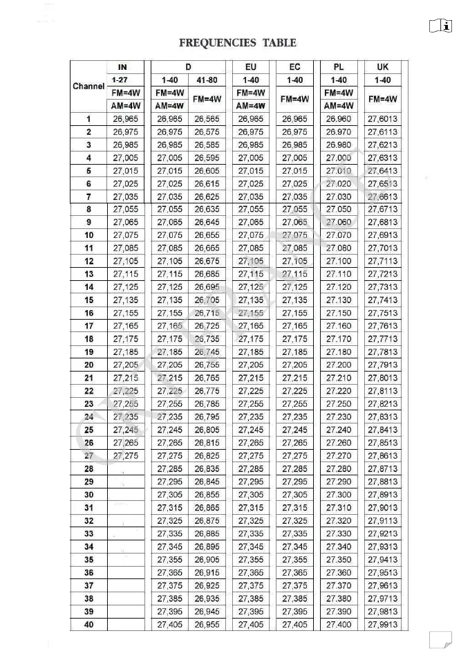CRT Millenium - FREQUENCIES TABLE; Channel Frequency Assignments