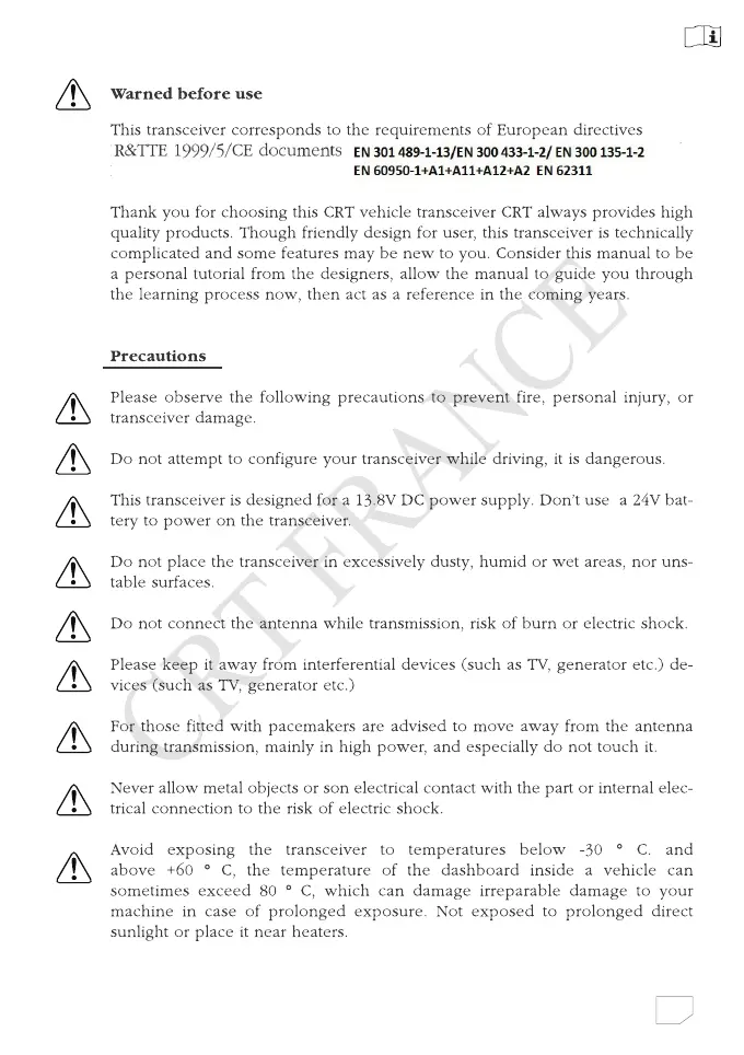 CRT Millenium - SAFETY PRECAUTIONS; General Operation and Environmental Safety; Electrical Safety and Interference Hazards; Pacemaker User Advisory