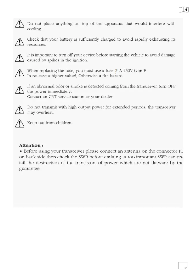 CRT Millenium - FURTHER SAFETY PRECAUTIONS; Device Maintenance and Hazard Warnings; Pre-Transmission Safety Checks
